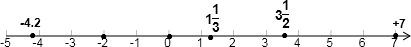 在数轴上表示下列各数:0,-4.2,