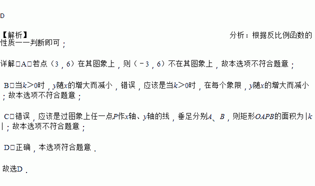A. 若点(3,6)在其图象上,则(﹣3,6)也在其图象上