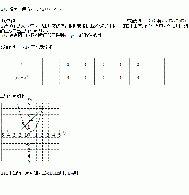 (1)完成下表并画出二次函数y2=x2的图像;