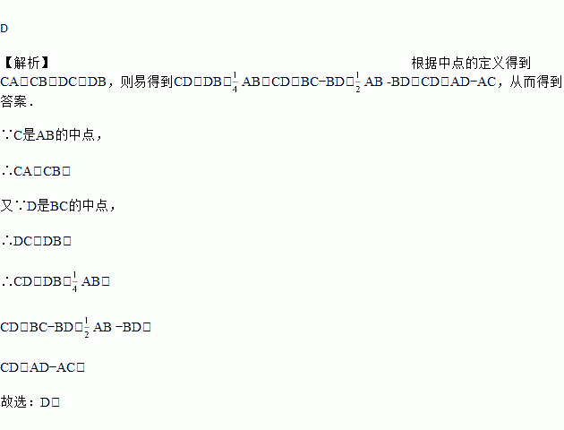 如图,C是AB的中点,D是BC的中点,则下列等式不成立的是( )