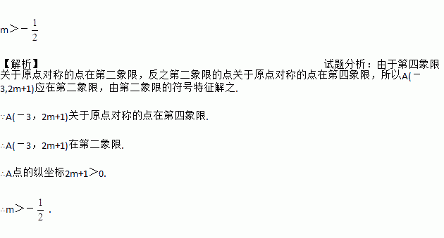 如果点A(-3,2m+1)关于原点对称的点在第四象限,求m的取值范围.
