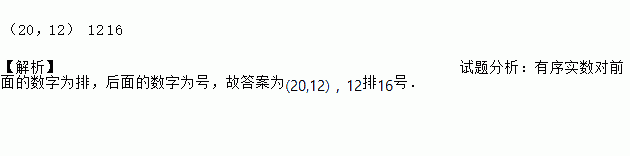 电影票上的“6排15号”简记作(6,15),则“20排12号”记作(__________),(12,16)表示__________排__________号.