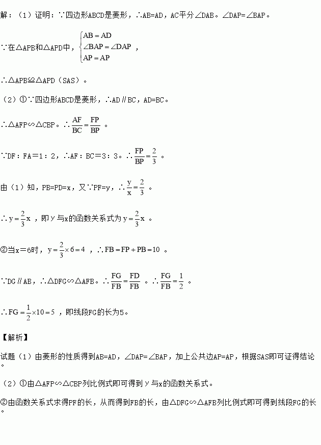 (2)已知DF:FA=1:2,设线段DP的长为x,线段PF的长为y.
