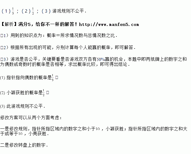 ,小亮获胜.如果指针恰好指在分割线上,那么重转一次,直到指针指向一个数字为止.![]()
