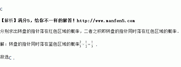 如图,同时转动两个转盘,转盘的指针同时在红色区域内的概率为( )