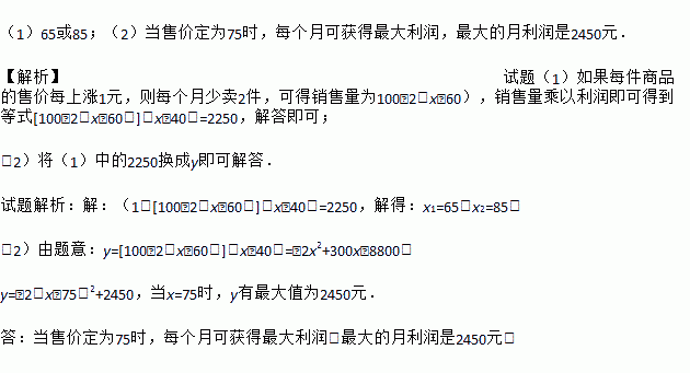 (1)当每件商品的售价是多少元时,每个月的利润刚好是2250元?