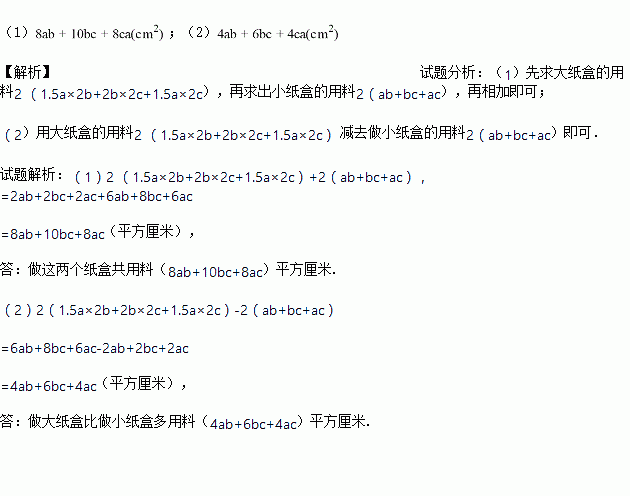 (2)做大纸盒比做小纸盒多用料多少平方厘米?