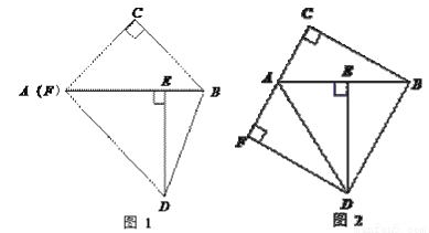 在中, ,将绕点A顺时针旋转到的位置,点E在斜边AB上,连结BD,过点D作于点F.