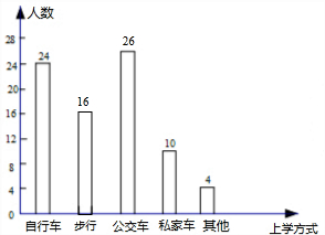 (4)自行车、步行、公交车、私家车、其他交通工具所占比例之和为100%,再由直方图具体人数来相减求解.