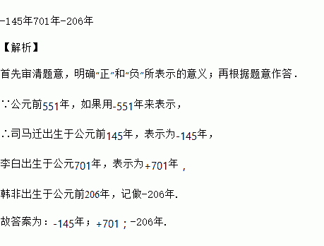 孔子出生于公元前551年,如果用一551年表示,那么下列历史文化名人的出生年代应该如何表示?