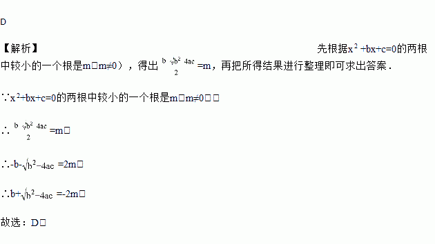 若 x2+bx+c=0的两个根中较小的一个根是m(m≠0),则b+ 等于( )