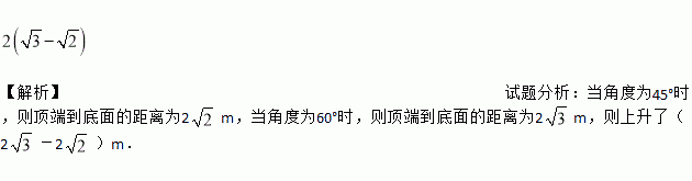 长为4m的梯子搭在墙上与地面成45°角,作业时调整为60°角(如图所示),则梯子的顶端沿墙面升高了____m.
