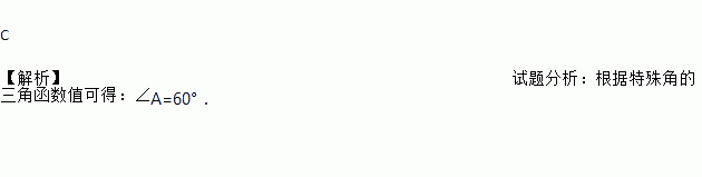 已知∠A为锐角,且sinA=,那么∠A等于( )