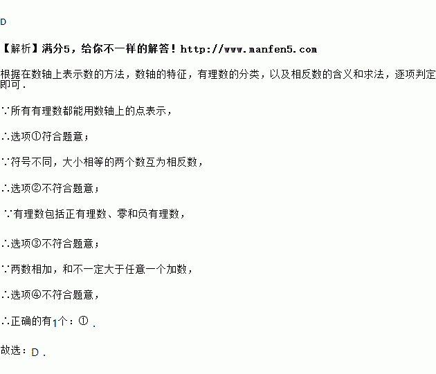 下列说法:①所有有理数都能用数轴上的点表示;②符号不同的两个数互为相反数;③有理数包括正数、零和负数;④两数相加,和一定大于任意一个加数,其中正确的有( )