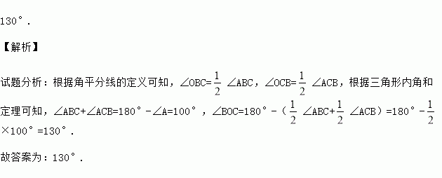 如图,在△ABC中,∠A=800,∠ABC与∠ACB的平分线义交于点O,则∠BOC= 度.