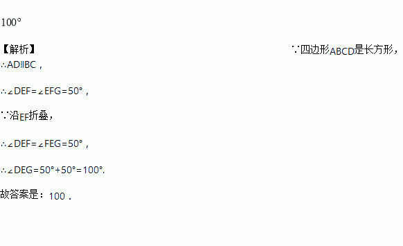 如图,把一张长方形纸片ABCD沿着EF折叠,若∠EFG=50°,那么∠BGE=_______度.