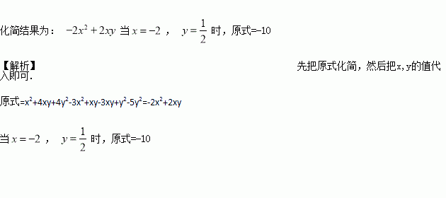 先化简后求值:(x+2y)2?(x+y)(3x?y)?5y2,其中x=?2,y=.