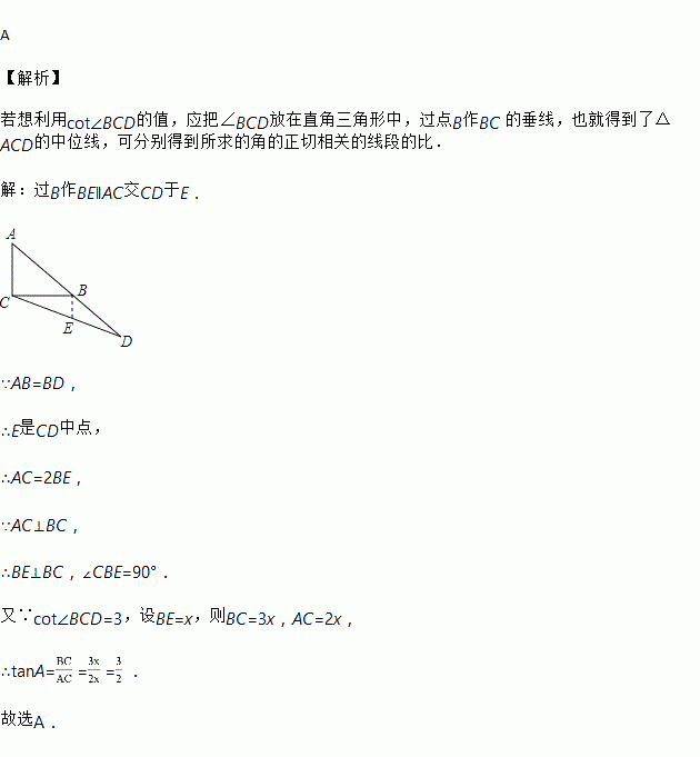 ,则tanA=( )