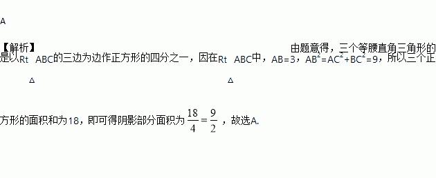 已知:如图,以Rt△ABC的三边为斜边分别向外作等腰直角三角形。若斜边AB=3,则图中阴影部分的面积为