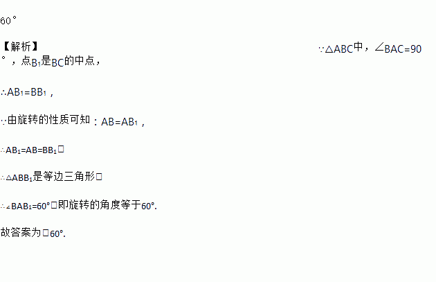 如图,在 中, .如果将该三角形绕点 按顺时针方向旋转到 的位置,点 恰好落在边 的中点处.那么旋转的角度等于________.