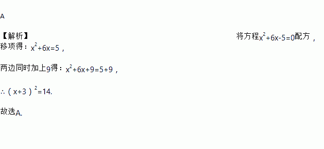 A. (x+3)2=14 B. (x﹣3)2=14 C. (x+3)2=4 D. (x﹣3)2=4