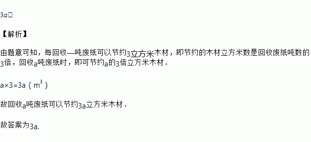 回收废纸用于造纸可以节约木材,据专家估计,每回收一吨废纸可以节约3立方米木材,那么回收a吨废纸可以节约______立方米木材.