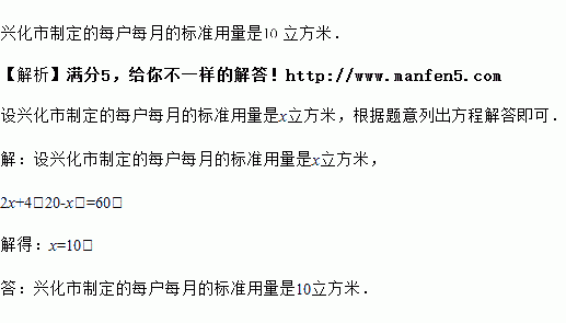 元,则兴化市制定的每户每月的标准用量是多少立方米?![]()