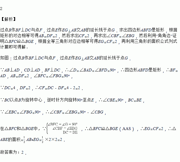 如图,在四边形ABCD中,AB⊥AD,CD⊥AD,将BC按逆时针方向绕点B旋转90°得到线段BE,连接AE.若AB=2,DC=4,则△ABE的面积为______.