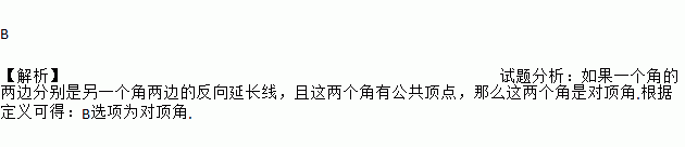 下列各图中,∠1与∠2是对顶角的是 ( )