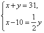 班上有男女同学31人,女生人数的一半比男生总数少10人,若设男生人数为x人,女生人数为y人,则可列方程组为( ).
