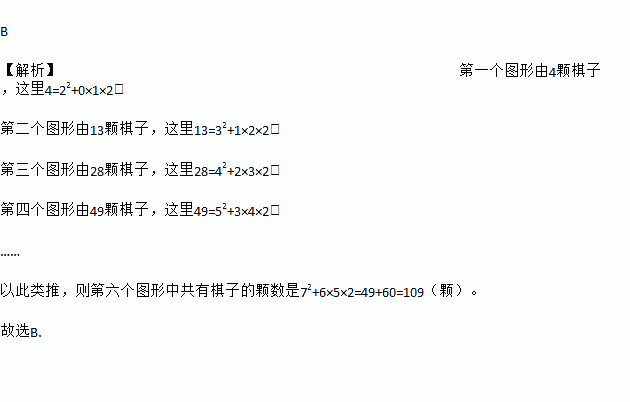 将一些完全相同的棋子按如图所示的规律摆放,第个图形有颗棋子,第个图形有颗棋子,第个图形有颗棋子,…,按此规律,则第个图形中共有棋子的颗数是( ).