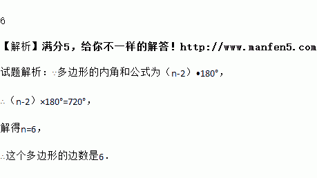 一个多边形的内角和是720°,这个多边形的边数是_____.