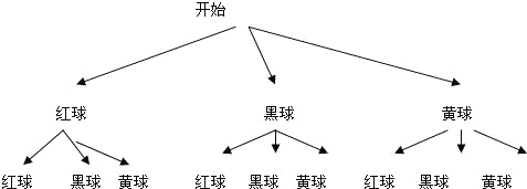 口袋中放有1个红球、1个黑球、1个黄球,这三种球除了颜色以外没有任何区别.小江同学第一次摸出一个球,并记录球的颜色后放回口袋;搅匀后,第二次摸出一个球.