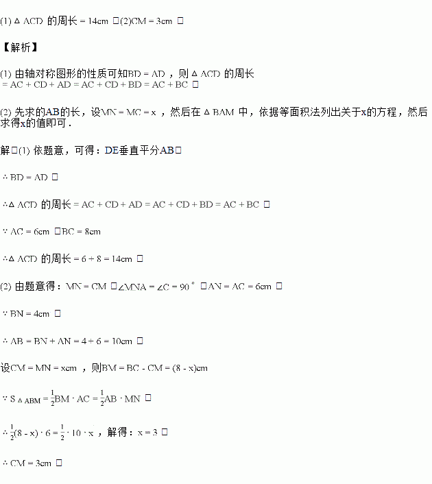如图1,若点B关于直线DE的对称点为点A,连接AD,试求的周长;