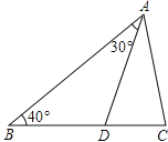 如图,在△ABC中,AD平分∠BAC且与BC相交于点D,∠B=40°,∠BAD=30°,则∠C的度数是( )