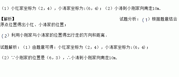 (2)小刚家的位置是(6,3),则小涛到小刚家怎么走?