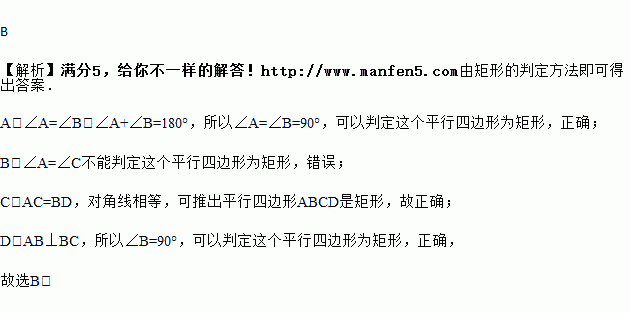已知平行四边形ABCD,下列条件中,不能判定这个平行四边形为矩形的是( )