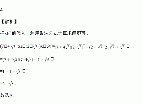 已知x=2-,则代数式(7+4 )x2+(2+)x+的值是( )