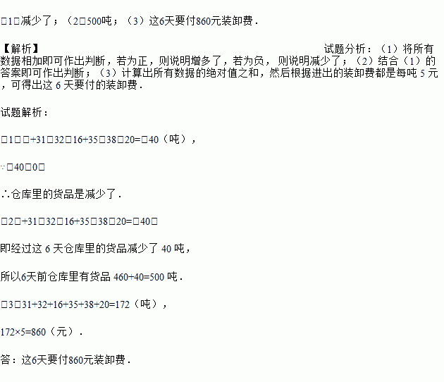 (3)如果进出的装卸费都是每吨 5 元,那么这 6 天要付多少元装卸费?