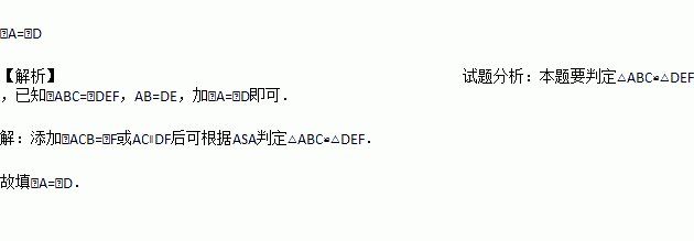 已知,如图:∠ABC=∠DEF,AB=DE,要说明△ABC≌△DEF,若以“ASA”为依据,还要添加的条件为__________.