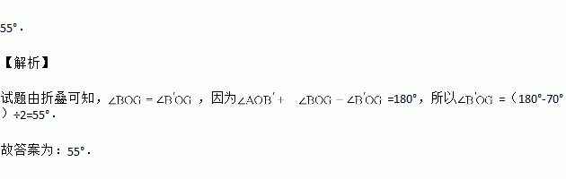 如图,把一张长方形的纸按图那样折叠后,B、D两点落在B′、D′点处,若得∠AOB′=70°,则∠B′OG的度数为__________.