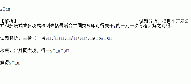 解方程:(x-1)(1+x)-(x+2)(x-3)=2x-5.