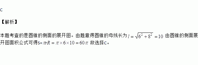 A. 36πcm2 B. 48πcm2 C. 60πcm2 D. 80πcm2