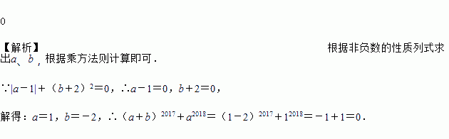 已知|a-1|+(b+2)2=0,求(a+b)2017+a2018的值.