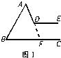 分析:本题可添加辅助线,如延长AD交BC于F(如图1),或如图2,反向延长DE,交AB于F.