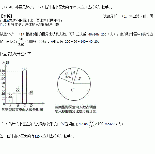 (2)若该小区共有4000人,请你估计该小区大约有多少人立刻去抢购该款手机.
