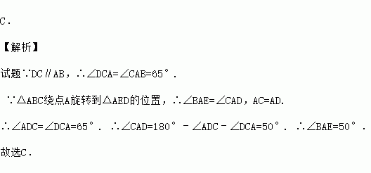 如图,△ABC中,∠CAB=65°,在同一平面内,将△ABC绕点A旋转到△AED的位置,使得DC∥AB,则∠BAE等于( )