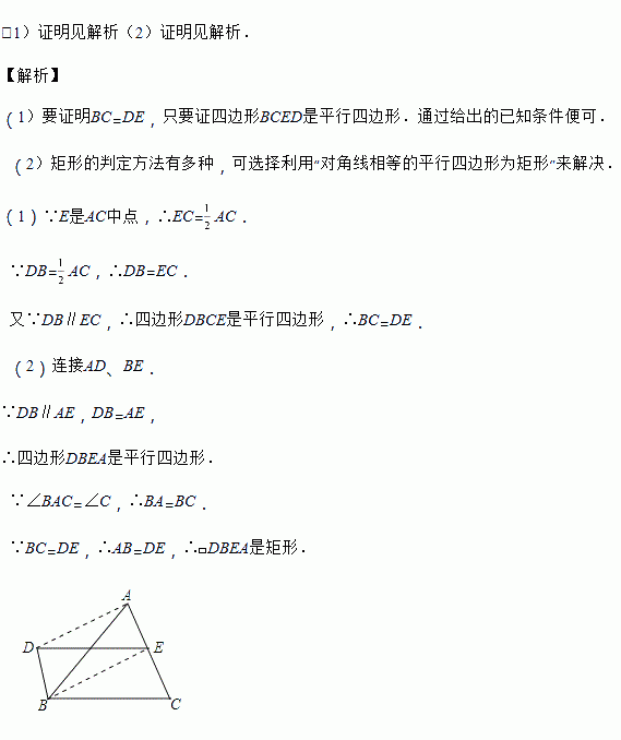 (2)连接AD、BE,若∠BAC=∠C,求证:四边形DBEA是矩形.