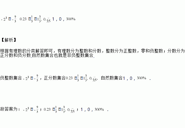 负整数集合________,正分数集合________,自然数集合________.