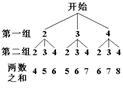 如图,有牌面数字都是2,3,4的两组牌.从每组牌中各随机摸出一张,请用画树状图或列表的方法,求摸出的两张牌的牌面数字之和为6的概率. ![]()